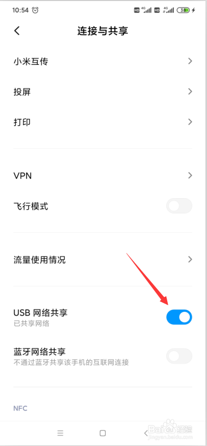 找到USB收集共享这一栏,将后面的开启即可。(如提醒USB未毗连请核实手机和电脑毗连是否畅达)