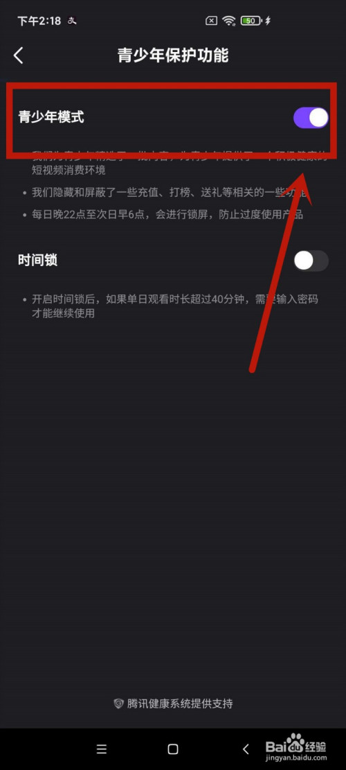 当看到青少年模式后的按钮被打开,即显示青少年模式已被启用。