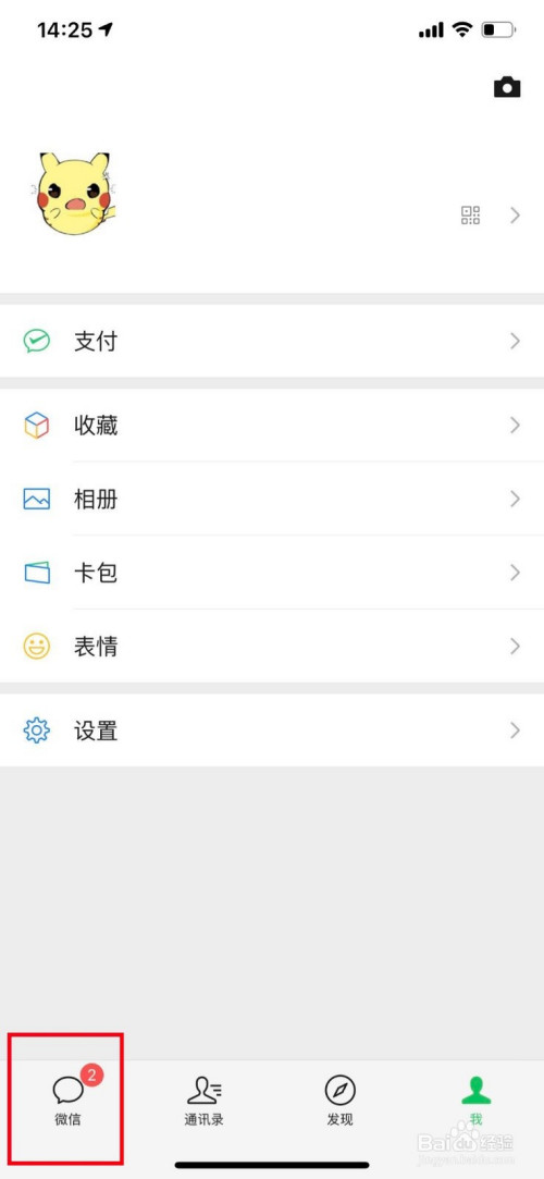 在微信的本家儿界面中,我们点击进入左下角微信聊天选项。