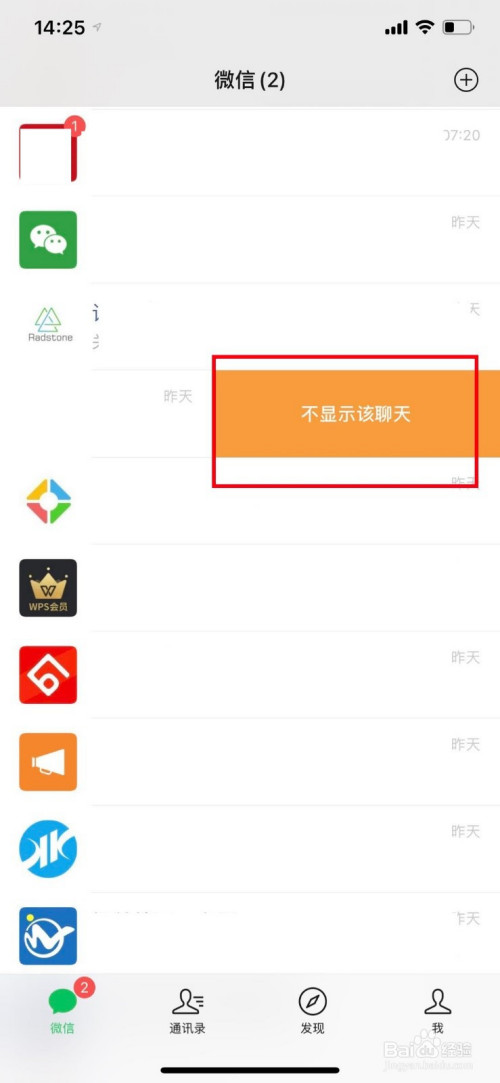 如图,在此页面中,我们找到需要埋没的聊天记实。