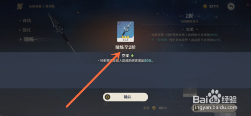 最后,看到【兵器精辟进级】即可。这样原神兵器就当作功进行精辟了。如下图所示
