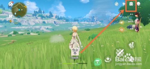 进入游戏界面后,点击右上方的【背包】进入。如下图所示