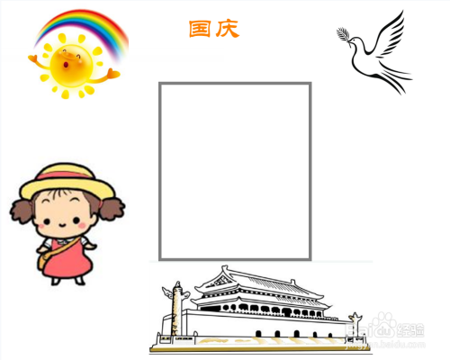 最后,在白纸中心空白处添加方框,写上与国庆相关的文字内容就可以啦~