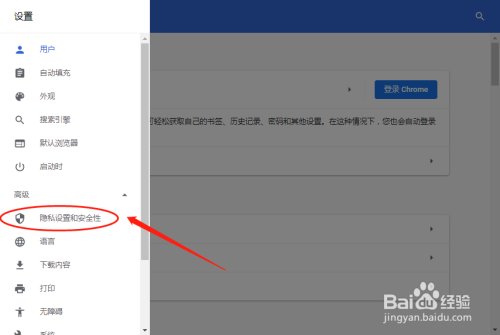 在菜单中点击选择隐私设置和平安性。