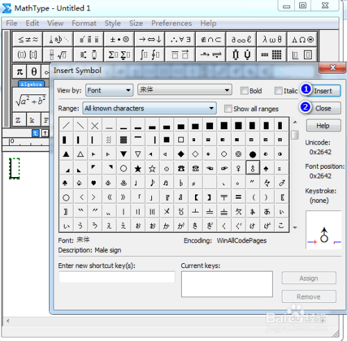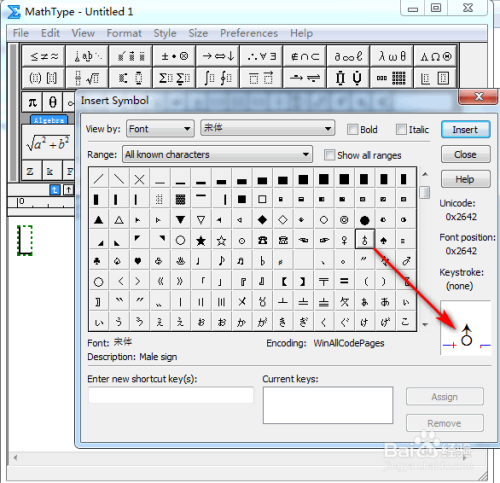 在符号面板中,找到并点中性别男符号,具体如图所示: