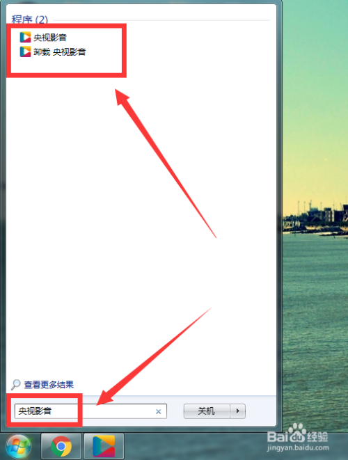 1.从win7开始菜单里,搜刮并选择央视影音。