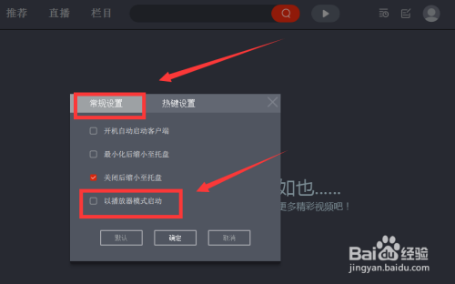 然后找到常规设置,点击勾选以播放器模式启动。