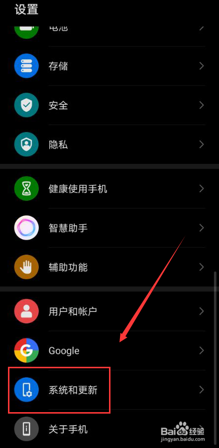 在设置功能中,点击系统和更新选项(图片中圈红的部门)