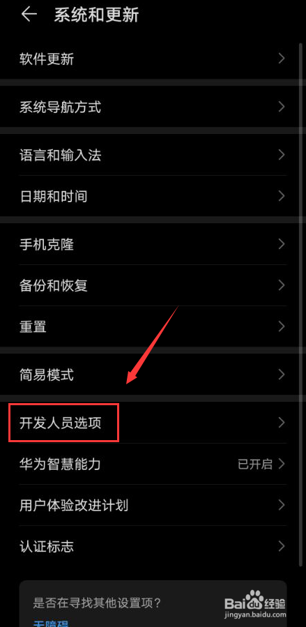 在系统和更新选项中,点击开辟人员选项(图片中圈红的部门)