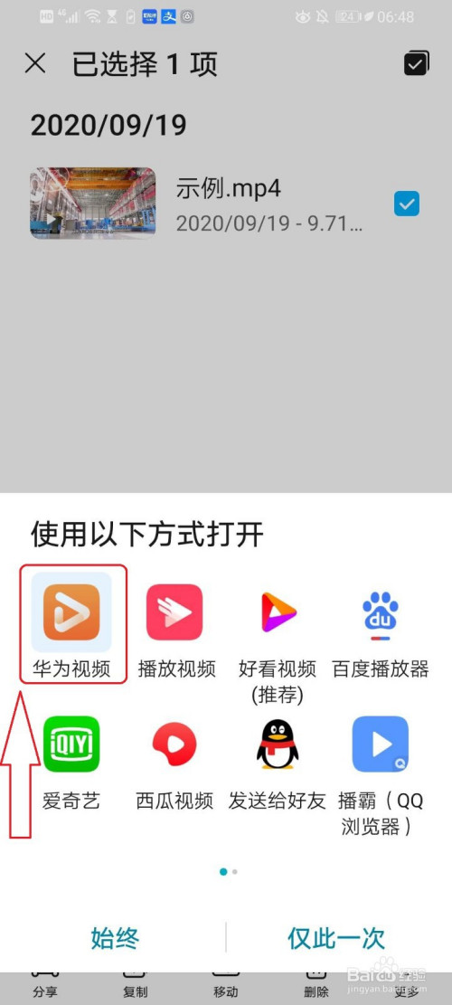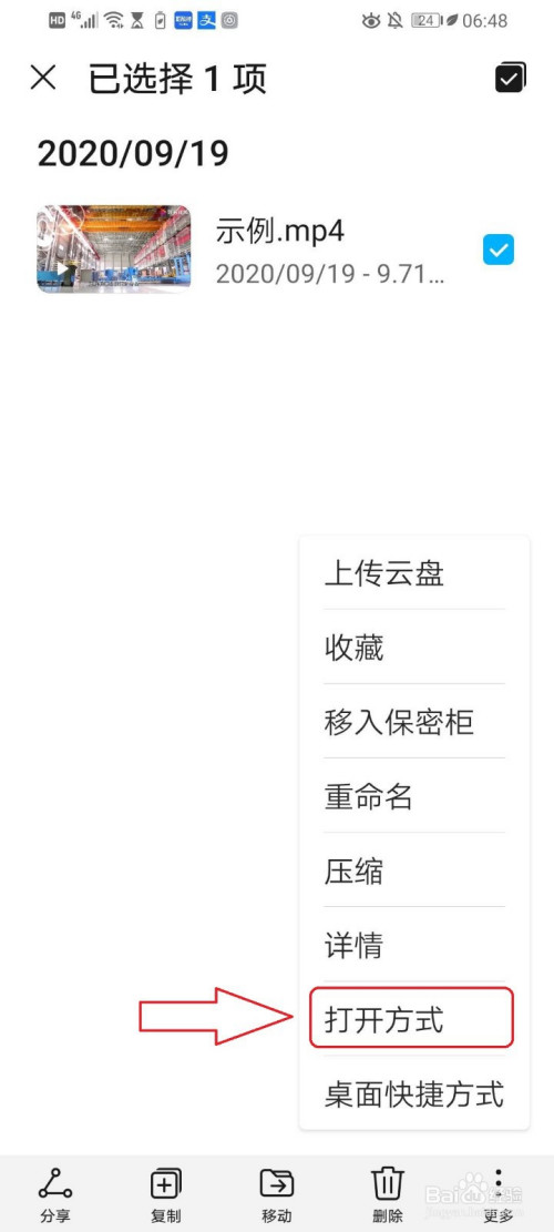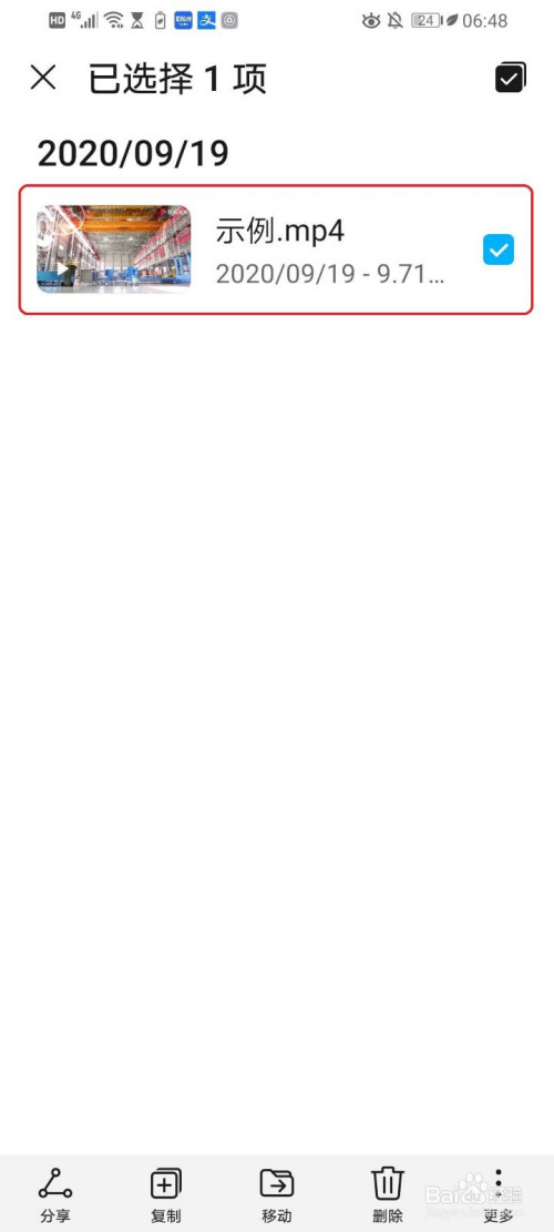 打开视频地点的文件,然后长按视频。