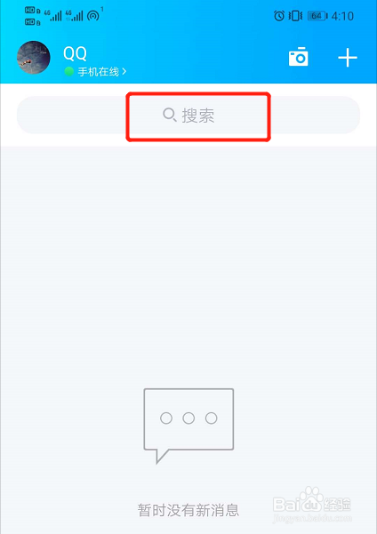 首先打开QQ,点击上方“搜刮”。