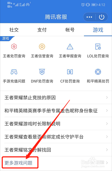 然后点击“更多游戏问题”。