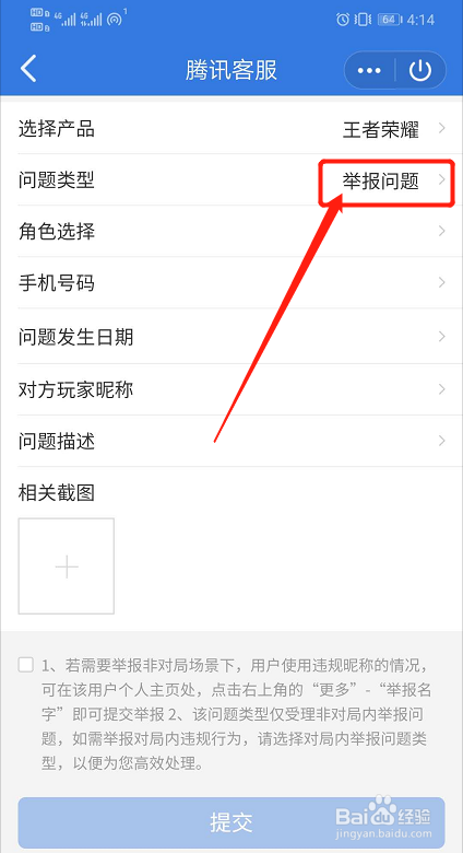 问题类型选择“举报问题”即可,最好提前对举报对象违规现象截图,这样有助于佐证也有利于举报当作功。