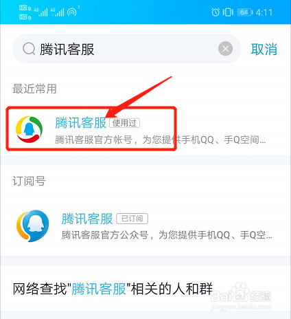 搜刮“腾讯客服”四个字,然后点击第一个。