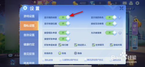 然后将显示我的战绩的滑动按钮标的目的右滑动。