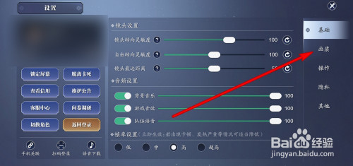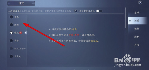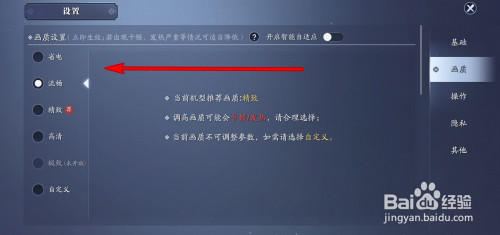 在画质界面可以调节降低画质。