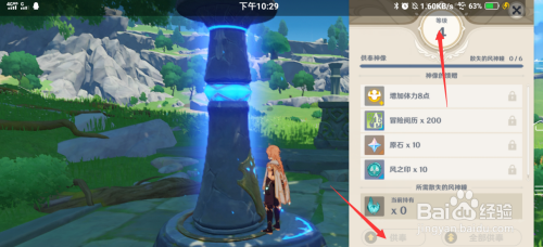 点击供奉按钮,进级七天神像即可。