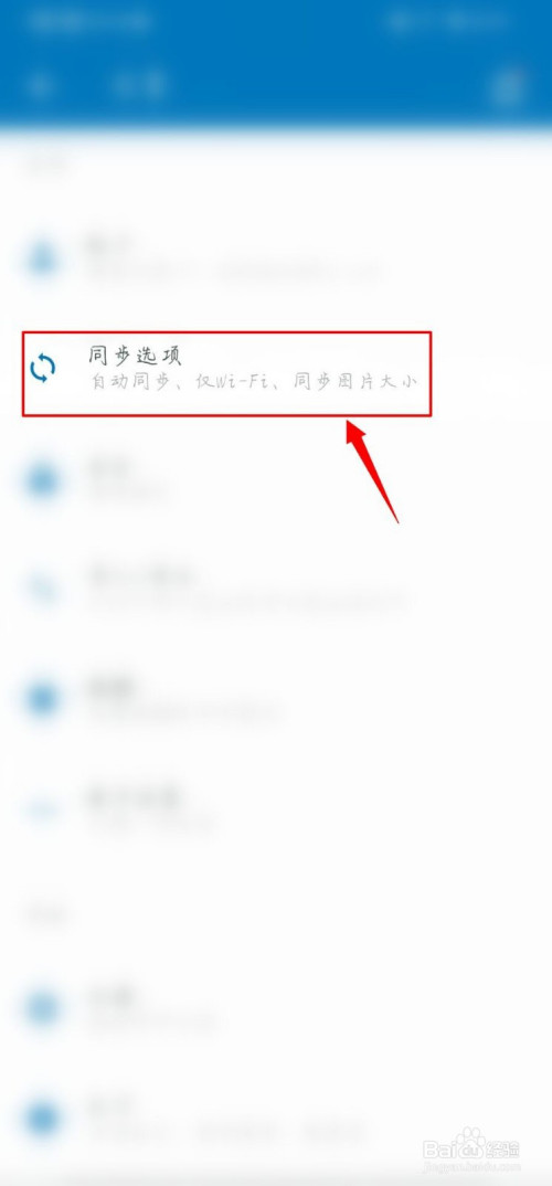 然后,我们在【设置】页面中点击【同步选项】。