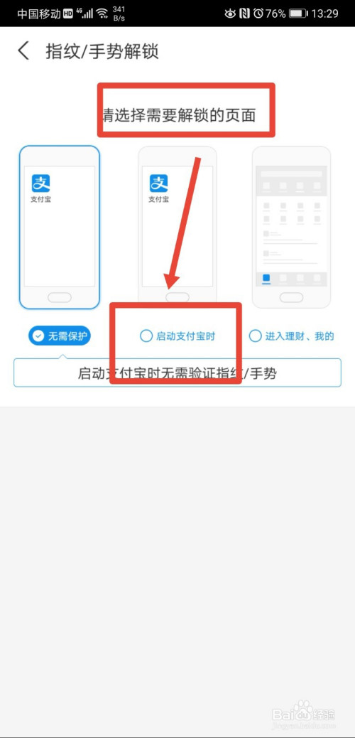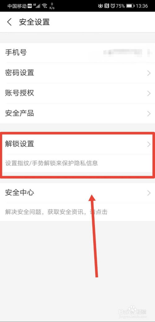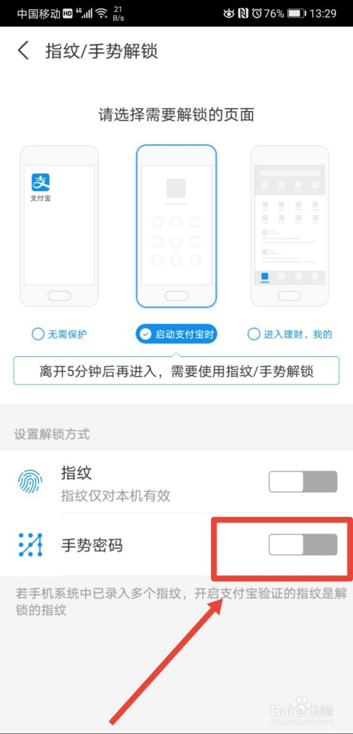 进入到指纹/手势解锁页面后,我们在选择需要利用指纹/手势解锁;