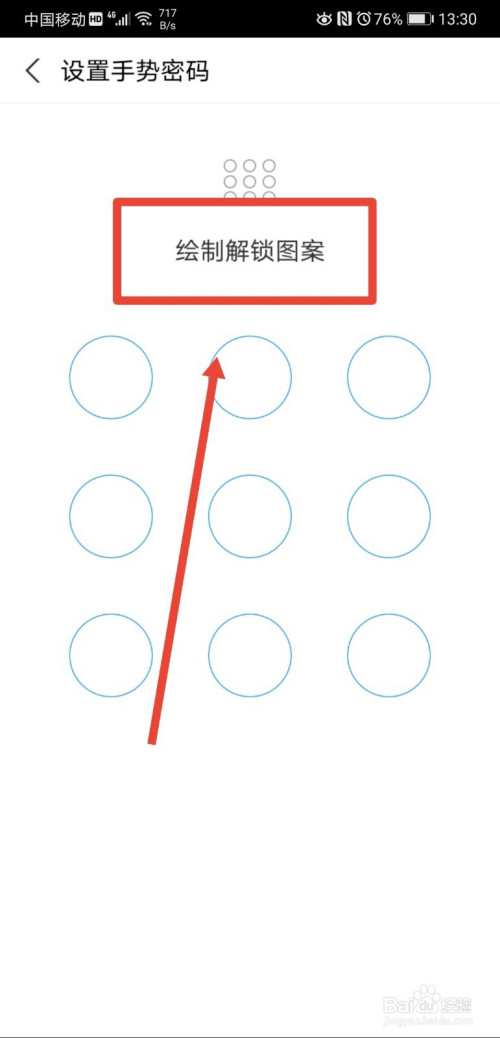 打开手势奥秘功能后,我们会进入到手势设置页面,这时我们将手势密码设置好即可;