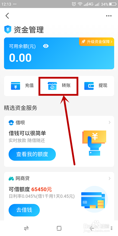 进入【资金办理】页面后,选择【转账】点击