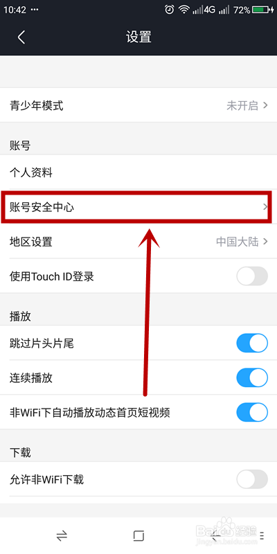 在【设置】页面,找到【账号平安中间】选项点击