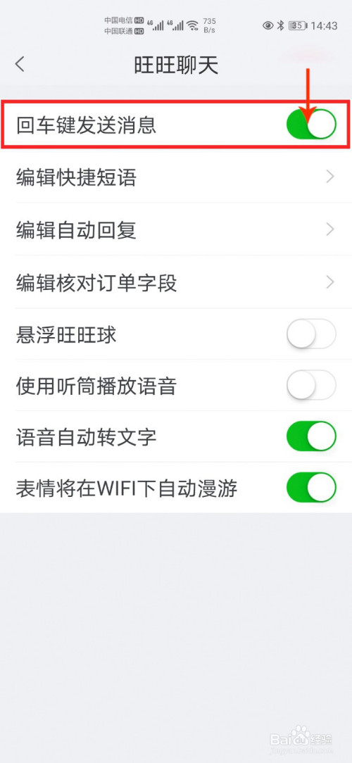 5、想要封闭回车键发送动静,再次点击后面按钮即可封闭。