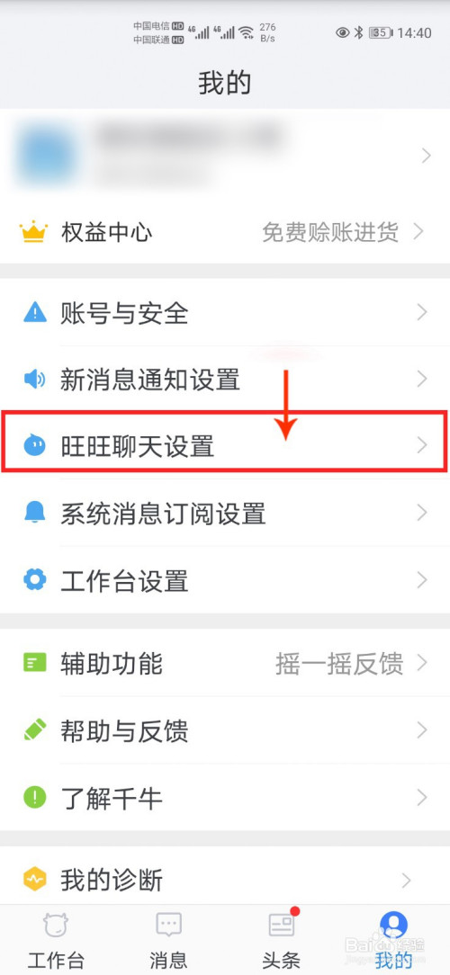 3、打开小我中间后,点击【旺旺聊天设置】。