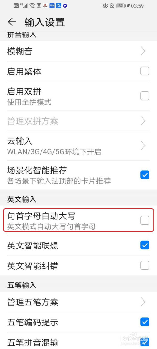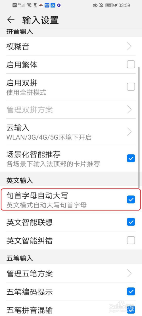 勾选【句首字母主动大写】。