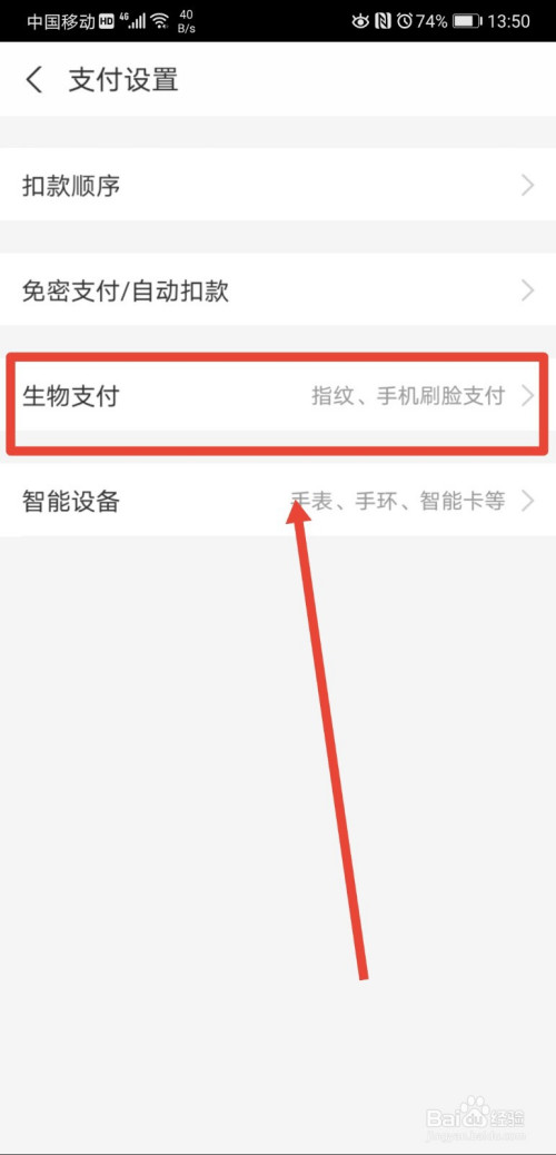 接下来再点击进入生物支付功能;