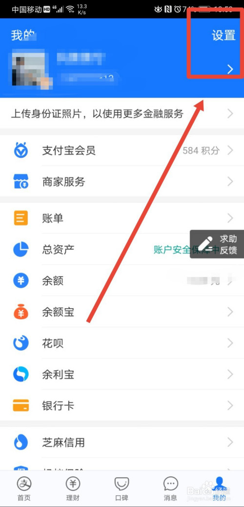 在支付宝首页,点击我的,进入小我中间页面;