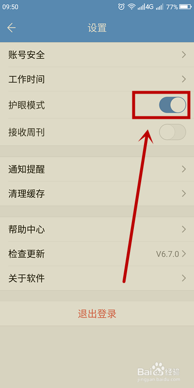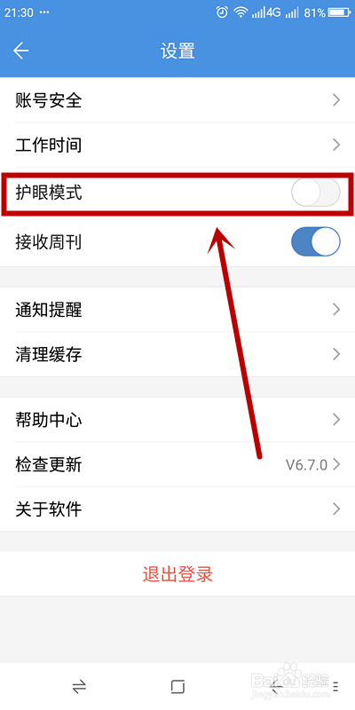 打开【许可呈现在其他应用上】功能开关后,回到【设置】页面,再次单击【护眼模式】功能开关即可当作功开启该模式