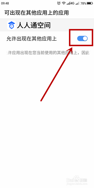 进入【可呈现在其他应用上的应用】页面,单击【许可呈现在其他应用上】后面的功能开关