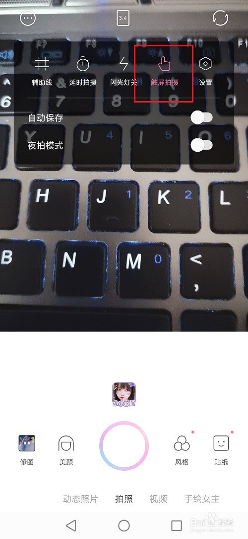 第四步点击之后,可以看到已经开启一甜相机触屏拍摄了