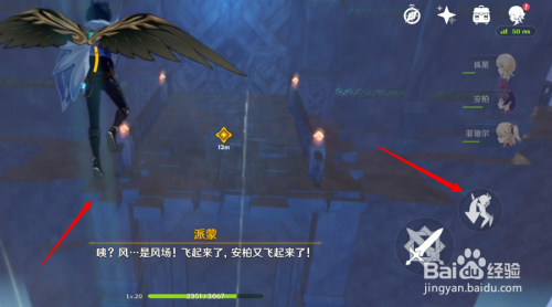 再然后,点击两下右下方的跳跃图标,朝着对面飞即可,因为半路上会有上升气流,将您吹起来。