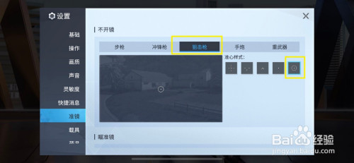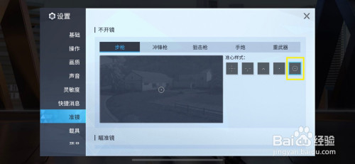 在设置的本家儿页面中,我们点击进入准镜选项。