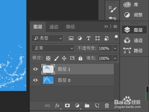 删除原图层,Ctrl+A全选水花,Ctrl+C复制水花,新建一个剪切蒙版;