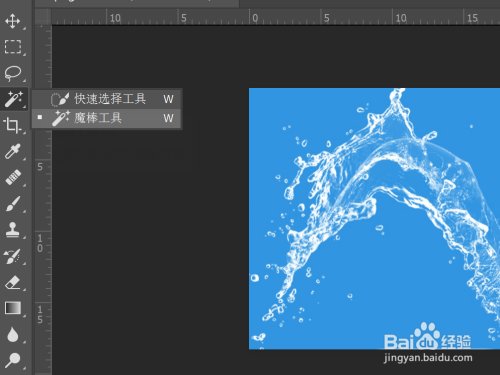 利用魔棒东西,按住shift键,选择图片上的水花区域;