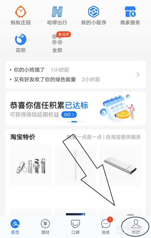 支付宝下方找到“我的”功能。