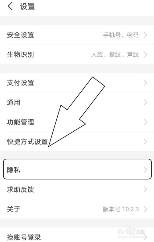 在设置中找到“隐私”功能。
