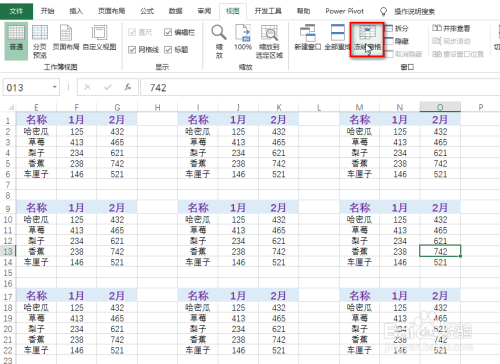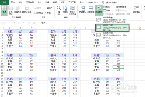 点击“视图”选项卡下的“冻结窗格”,具体如图所示: