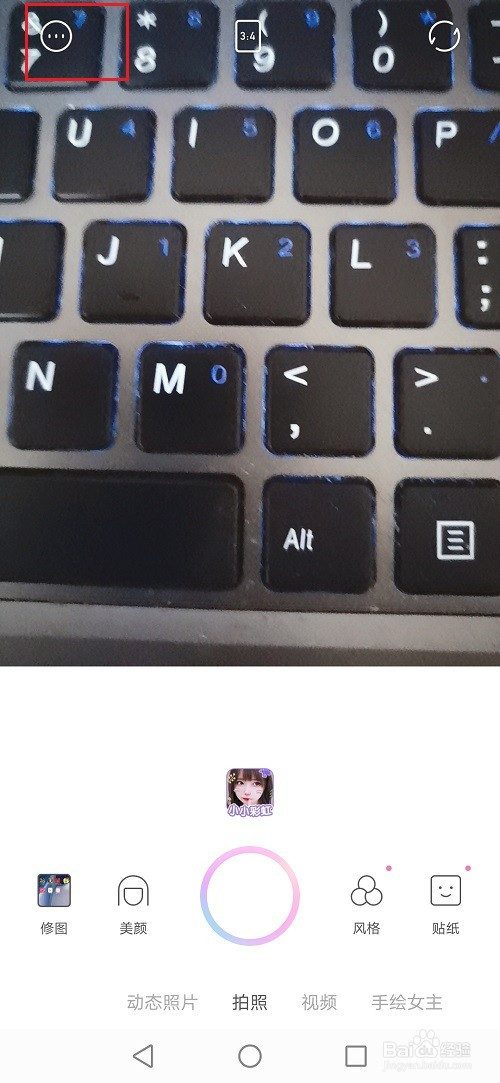 第二步进去一甜相机摄影界面之后,点击三点图标