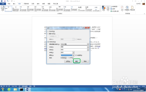在弹出的对话框中,输入水印的内容,设置水印的字体,设置水印显示的颜色,勾选水印为半透明按钮,点击确定,如图。