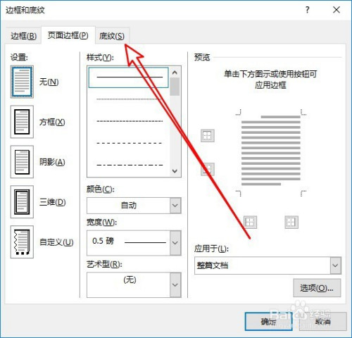 这时就会打开边框和底纹的窗口,点击底纹选项卡。