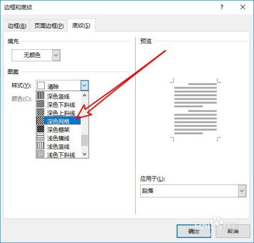 然后就会打开底纹的窗口,点击样式的下拉按钮。