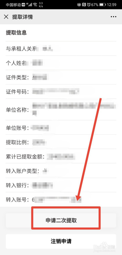 在提取详情页面,包含如下图中的所有信息,最后我们点击申请二次提取即可。