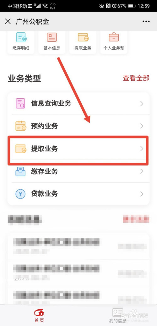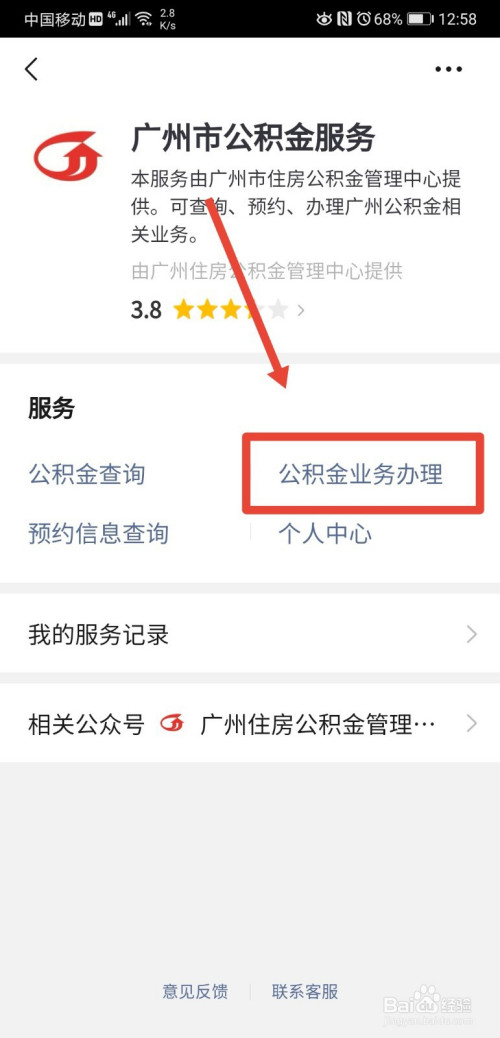 进入到广州市公积金办事页面后,继续点击进入公积金营业打点功能;