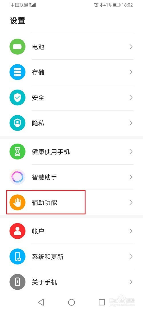 第一步打开华为手机设置,点击辅助功能