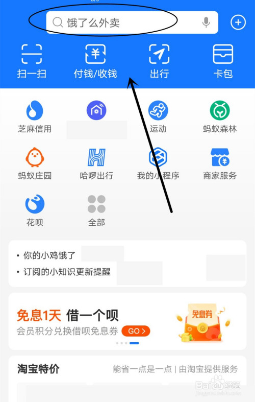 【1】将支付宝页面切换至“首页”。