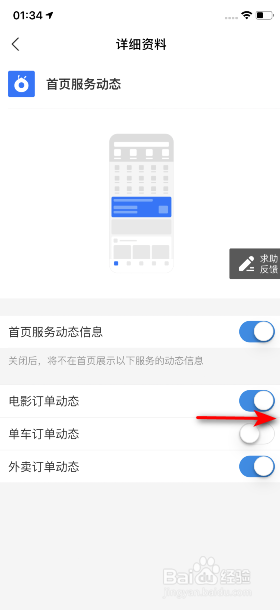 然后将单车订单动态的滑动按钮标的目的右滑动打开即可。